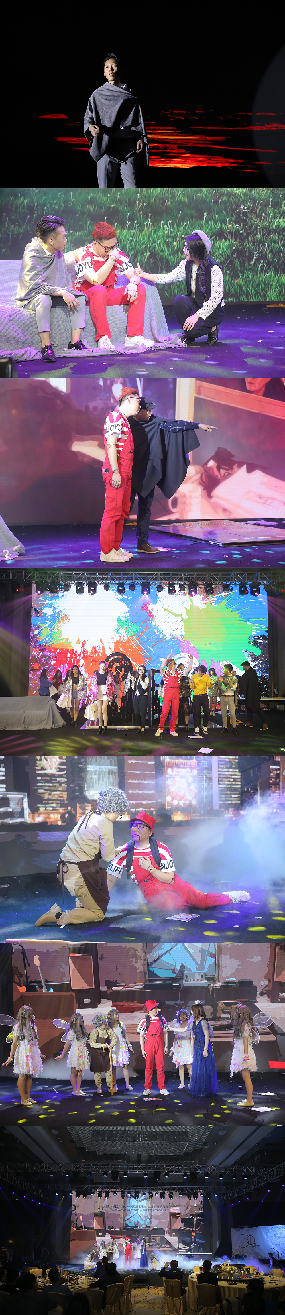 Joey:“ 造型的特色與定妝尤其煩惱,幸好每位同事對於自己的角色、性格與造型都給了非常多的建議和幫助。平時除了工作之外,還額外付出很多時間練習。今晚的舞臺劇,是每個同事的努力結果。”