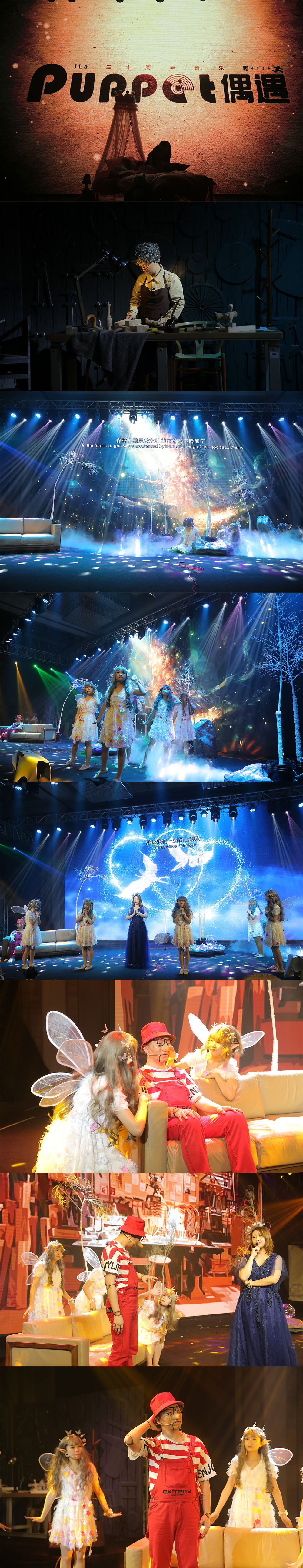 Minnie:“ 其實現場埋伏著驚喜。感謝25位道具組同事,隱身在場地的每壹個角落。舞臺劇融合空間、軟裝、藝術、視聽四個板塊設計。包括壹個巨型的鋼鐵木偶、每壹幕都是同事們日夜辛苦創造的,爲他們感到自豪。”